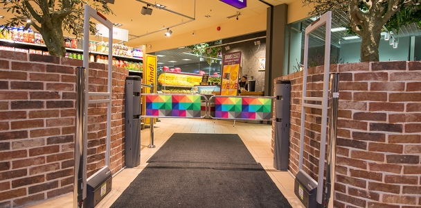 Võimalik on kasutada poe sissepääsudes nii turvaväravaid, sissepääsuväravaid kui ka põrandakleebiseid. Suuremamahulisi reklaame saab kaupluse hoone välisustel eksponeerida klaasikleebistena.