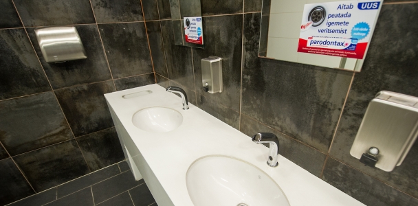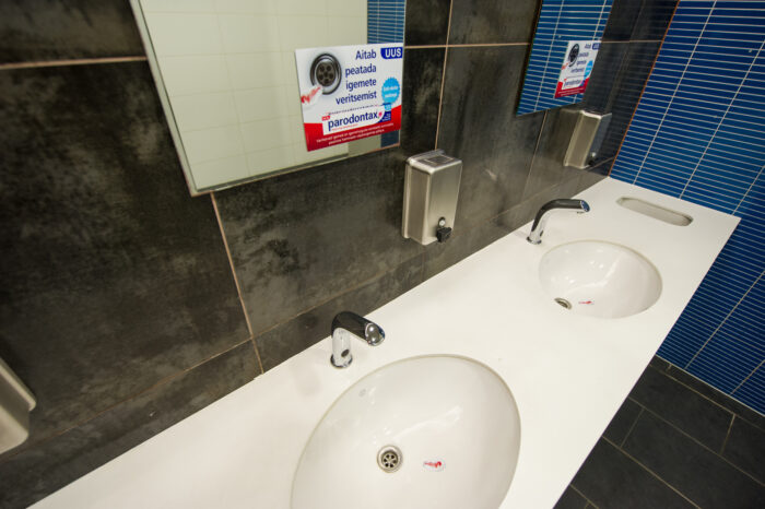 Peeglid, kraanikausid, seebidosaatorid, pissuaarid, uksed – võimalusi on lõputult. Väga hea reklaampind hügieeni või kodukeemia toodetele.